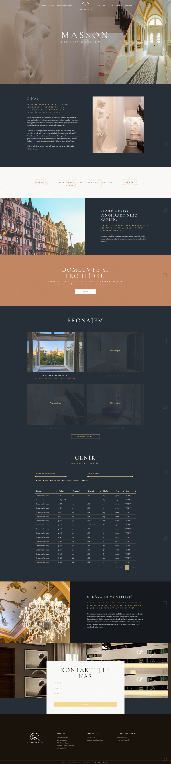 Pro předního hráče na Pražském developerském trhu jsme vytvořili web zaměřený na pronájmy nemovitostí. Web je na poslední verzi CMS Wordpress a kromě krásné grafiky a prezentace nemovitostí jsme vytvořili i systém nahrávání a filtrace jednotlivých bytů.